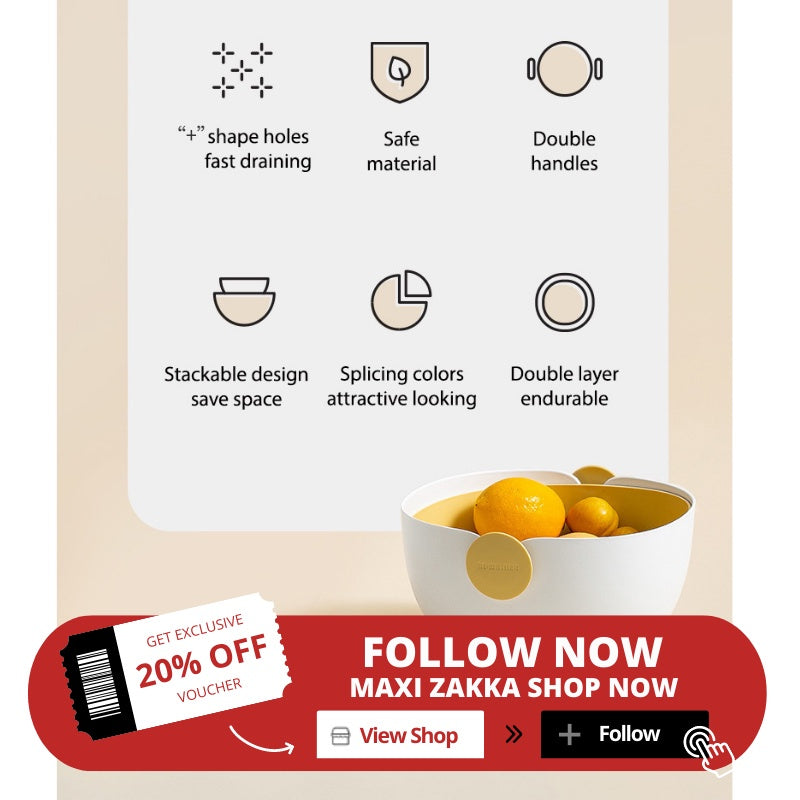 2-in-1 kitchen Strainer Detachable Colander & Bowl Set Save Space Fruits Vegetables Washing Colanders Stackable Set