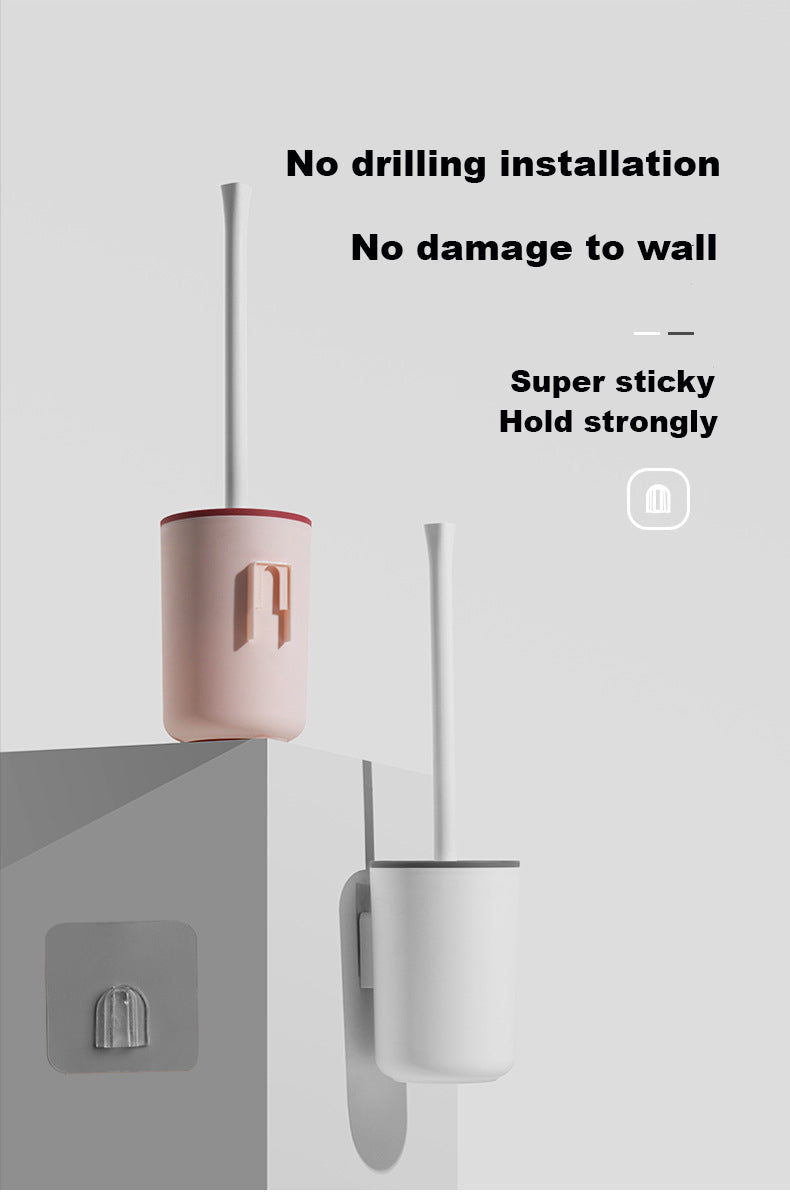 Bathroom No Drilling Free Punching Hanging Wall Mounted Silicone Toilet Brush Set