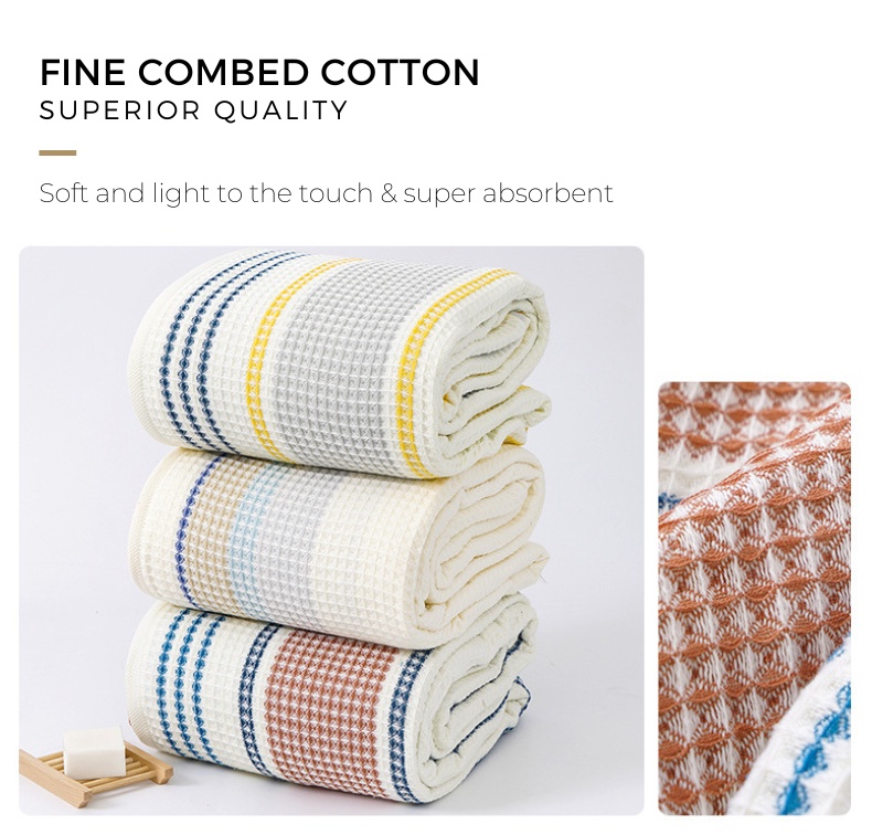 100% Cotton Bath Towel Home Beach Towel Soft Absorbent Color Stripes Honey Comb Weaves Large Bath Towel