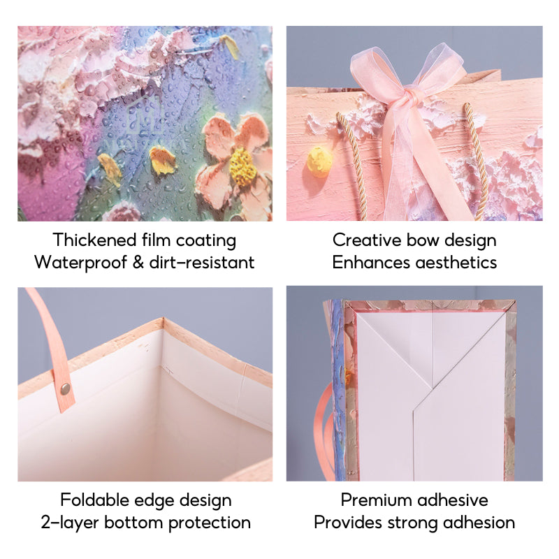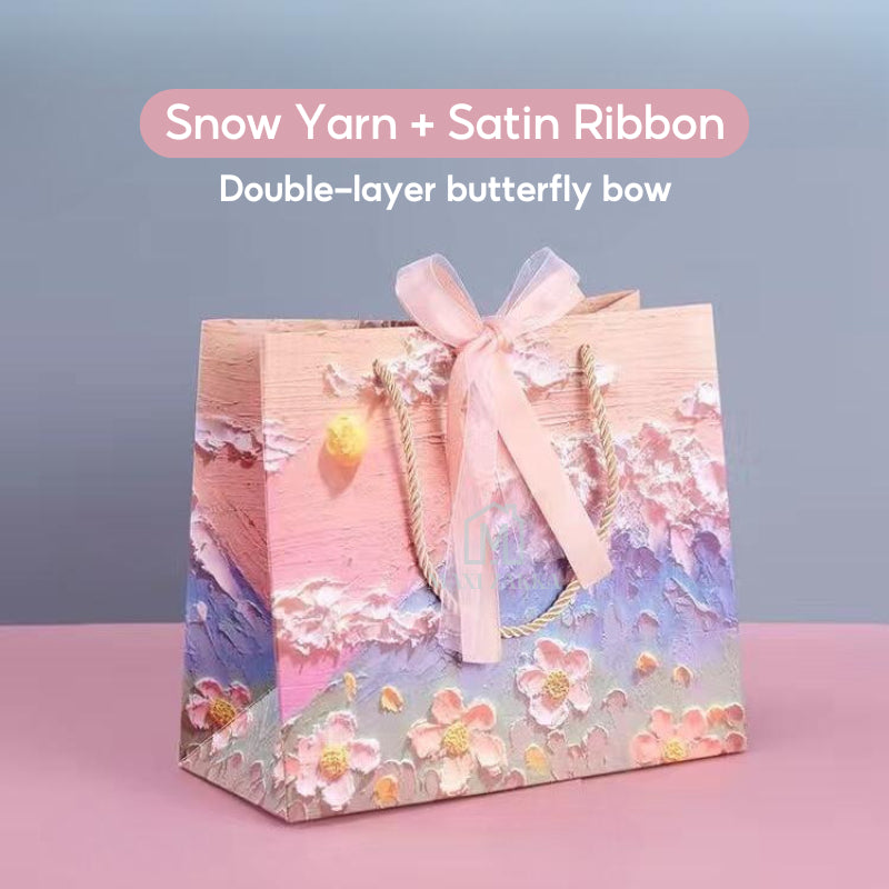 Elegant Design: Inspired by cloud-covered mountains and creamy petals, this gift bag features a three-dimensional oil painting style, exuding an air of sophistication and beauty.