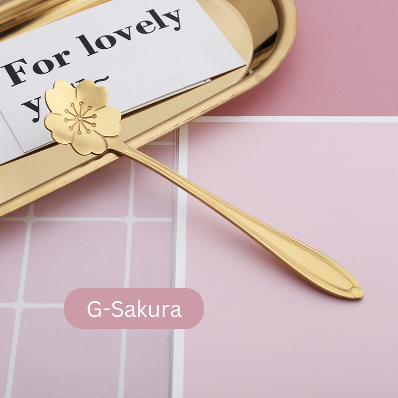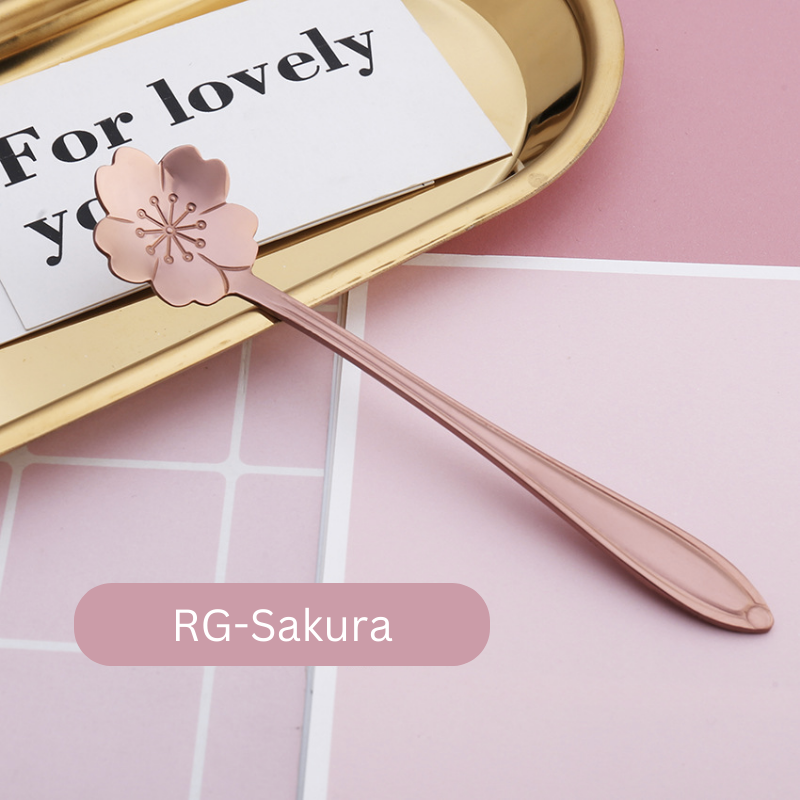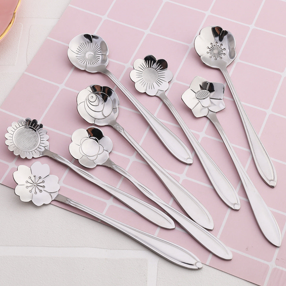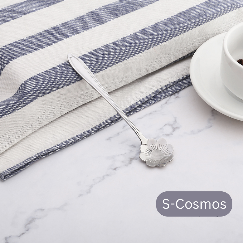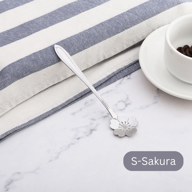 ๐ธ๐ฌ Stainless Steel Flower Spoon Short Handle Home Dessert Stirring Spoon Wedding Gift Cherry Blossom Design Titanium